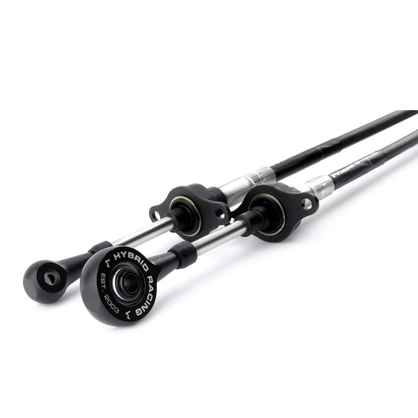 Hybrid Racing shifter cables are a performance upgrade replacement for stock OEM cables. The solid rod ends, permanently lubricated core, spherical bearings, & aluminum end links give the Hybrid Racing cables a firmer, tighter feel over OEM cables resulting in fewer missed shifts and a more connected feel to the chassis. Heat resistant up to 225*F with a max bend radius of 5" (for optimum life)
