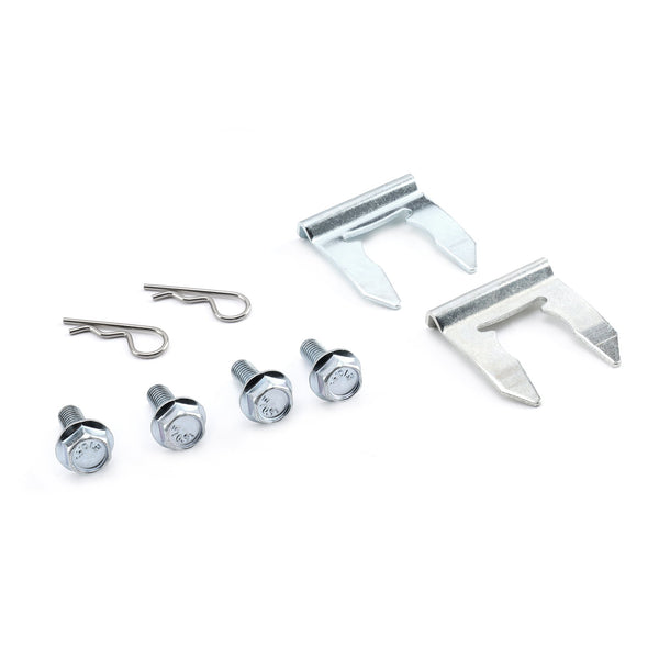The kit comes with two shifter cables; each shifter cable set includes two cotter pins, and clips for the shifter end. We also include new hardware for the shifter cable mounting plates that attach to the transmission bracket. You will reuse your OEM center bracket and cable seal.